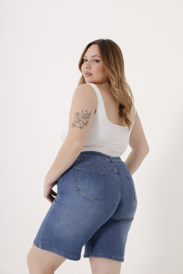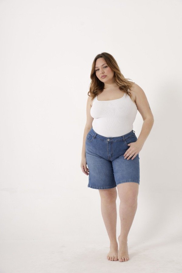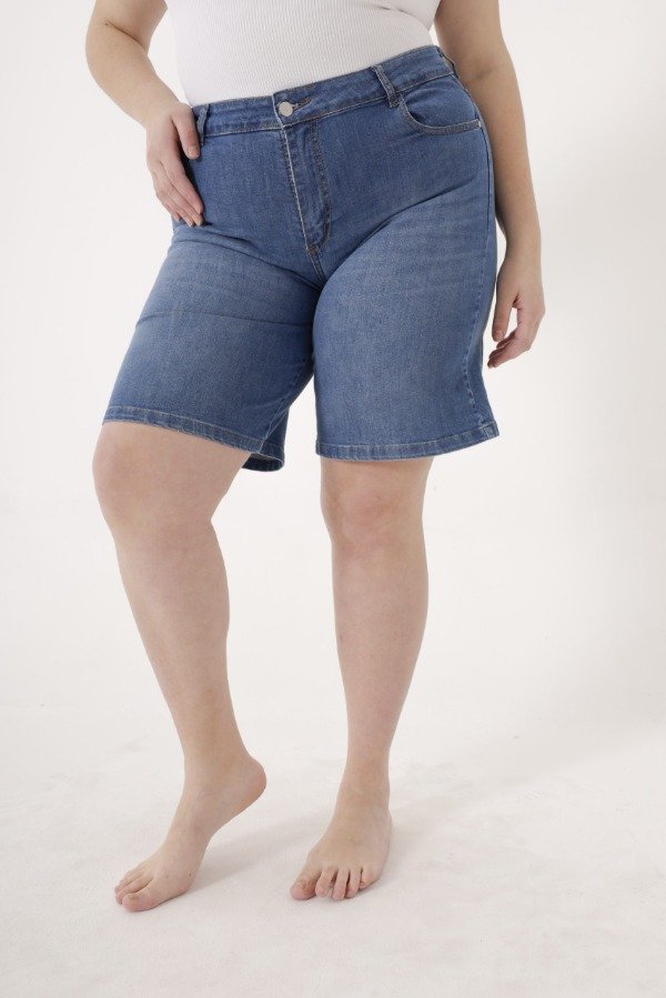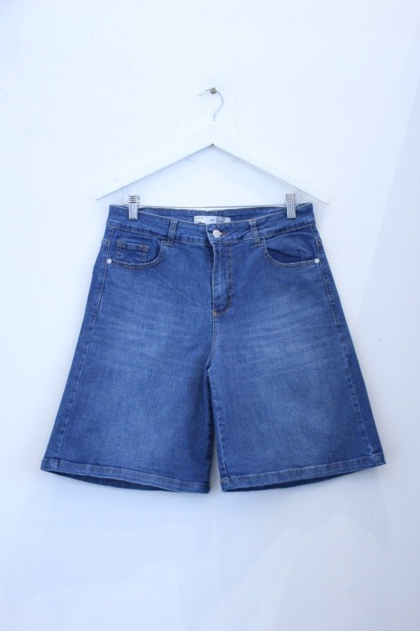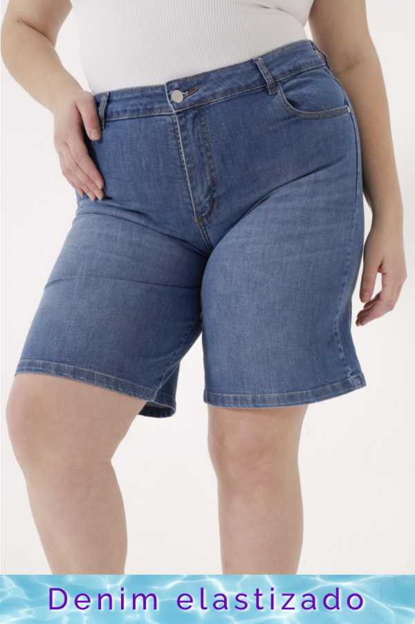 Bermuda de denim azul clásico.