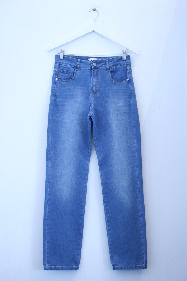 Elastizado, tiro alto, bolsillos delanteros y traseros, ruedo normal, detalle de bigotes. Semilocalizado (partes mas claras)