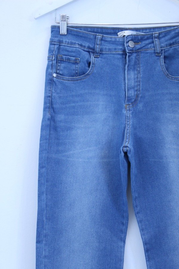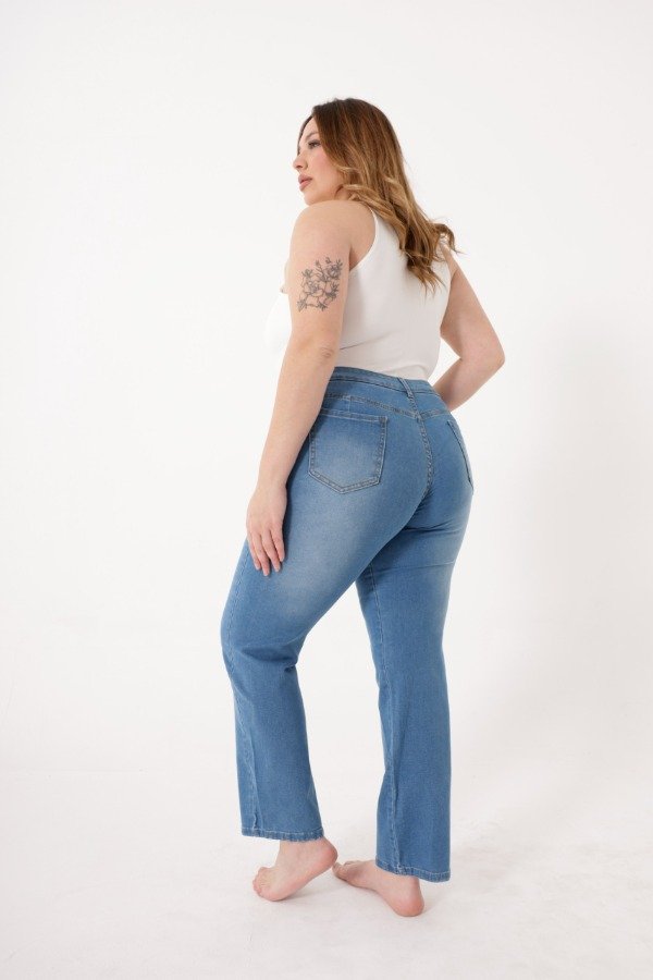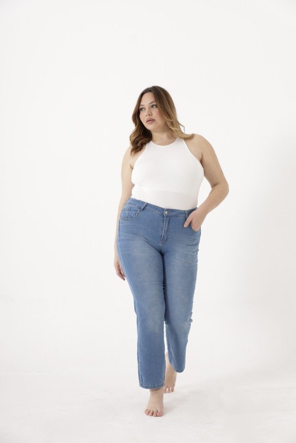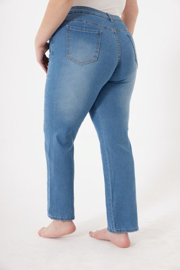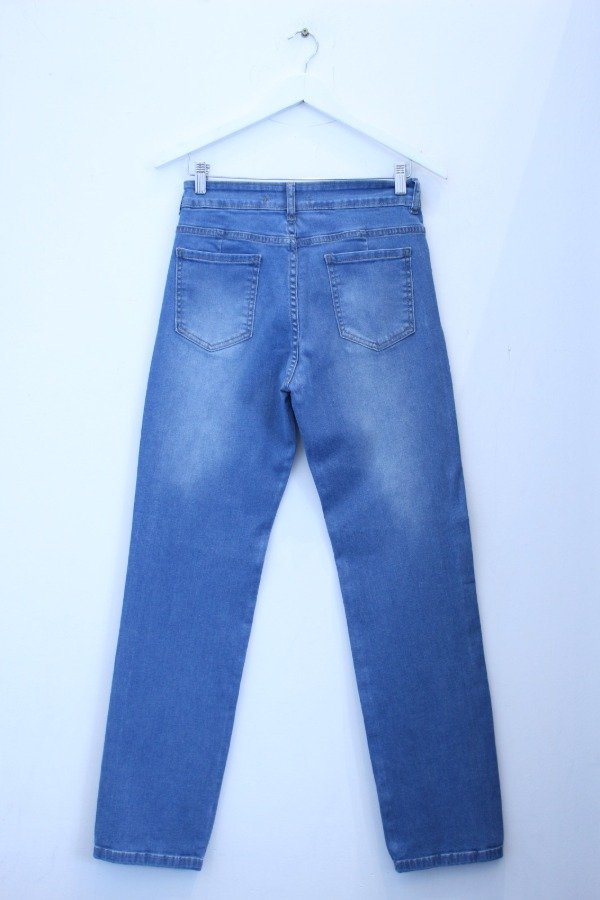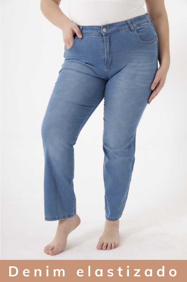 Elastizado, tiro alto, bolsillos delanteros y traseros, ruedo normal, detalle de bigotes.