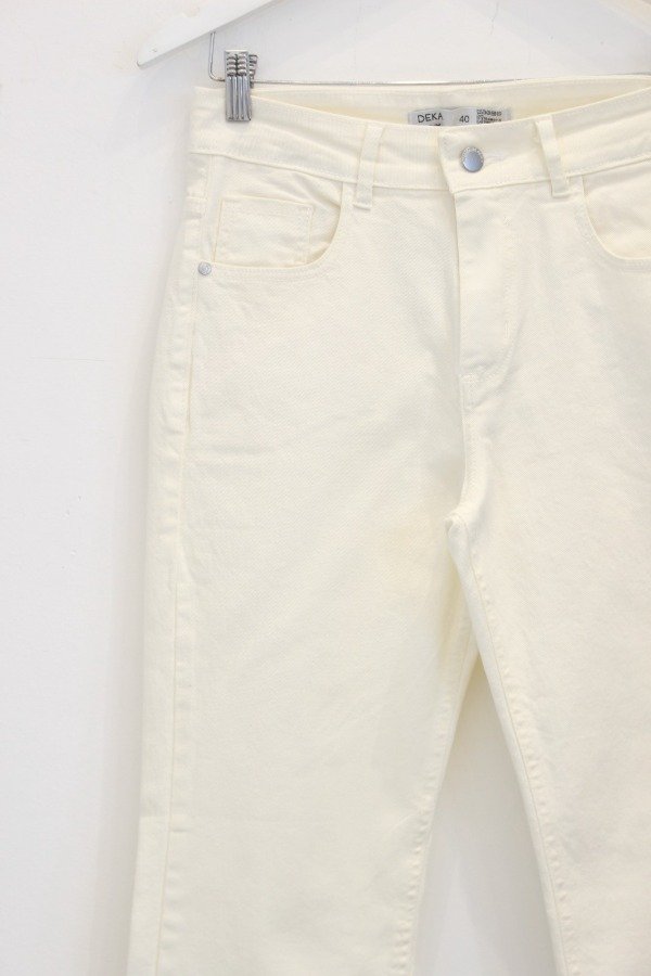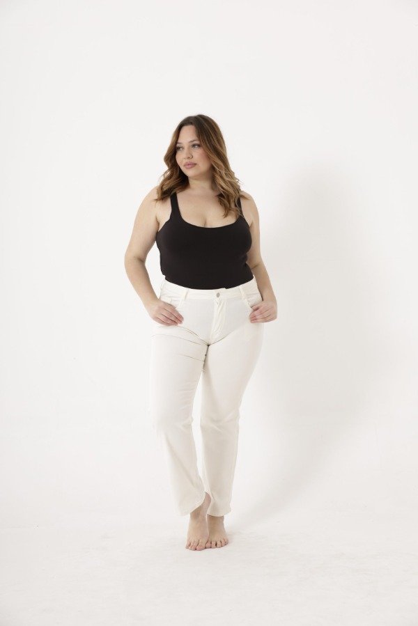 Elastizado, tiro alto, bolsillos delanteros y traseros. Ruedo normal.