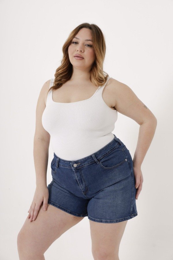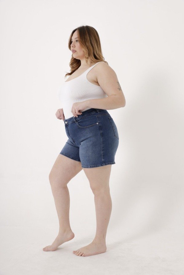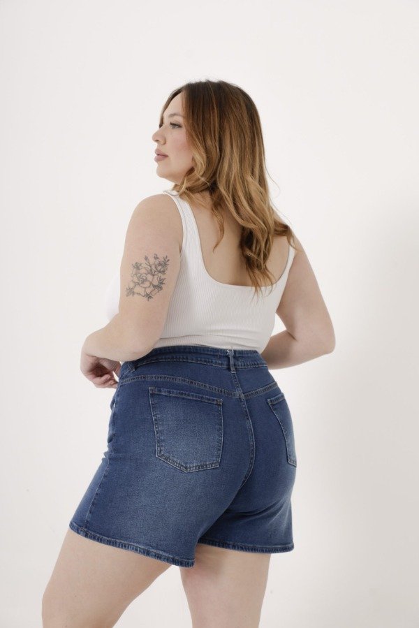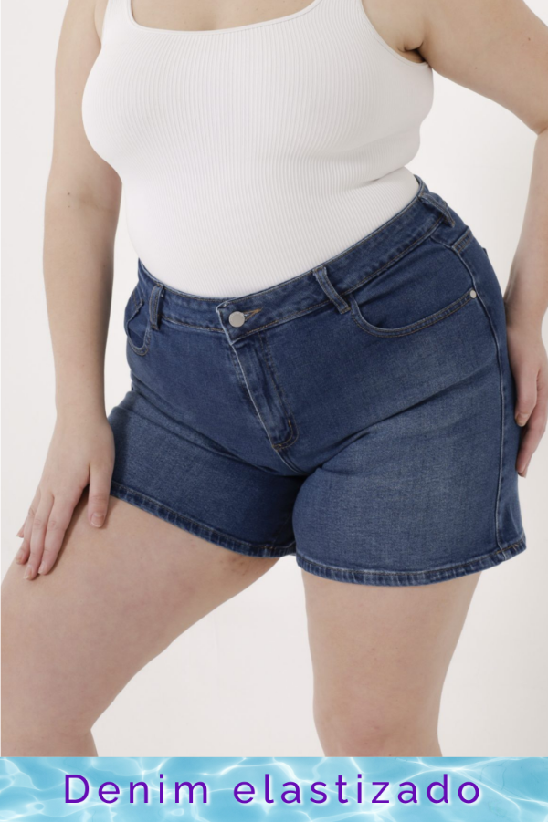 Short de denim azul oscuro.