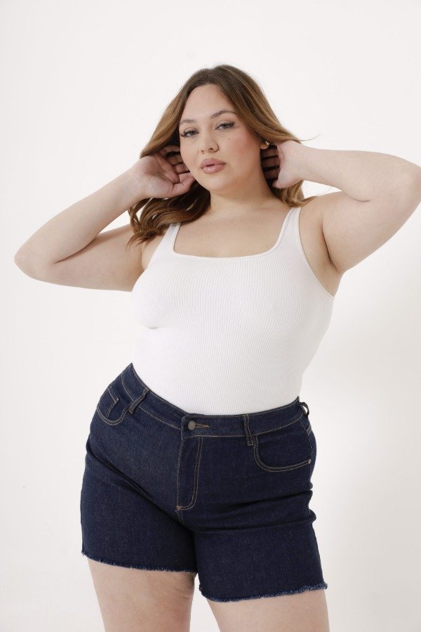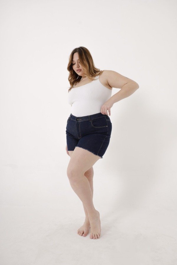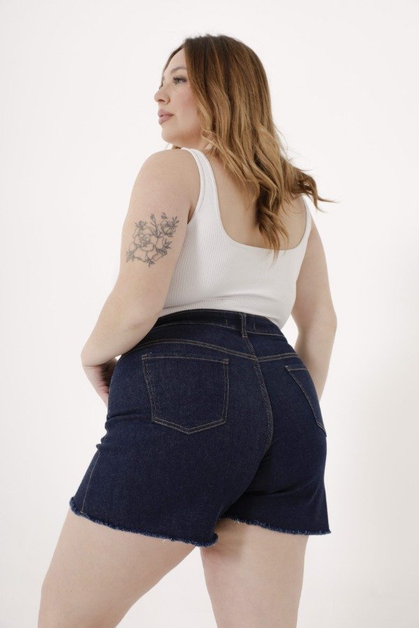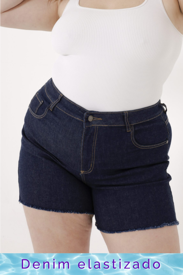 Elastizado, tiro alto, bolsillos delanteros y traseros, desflecado.