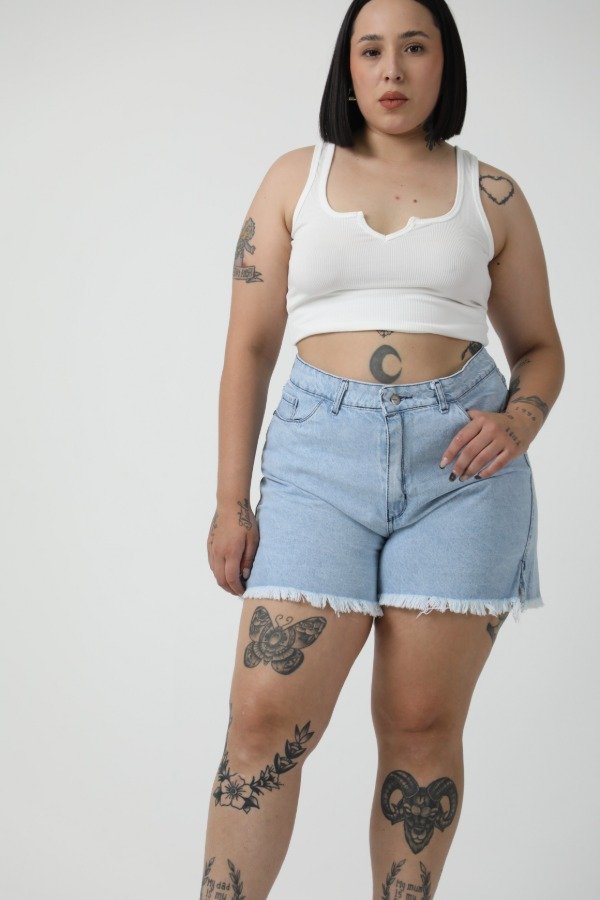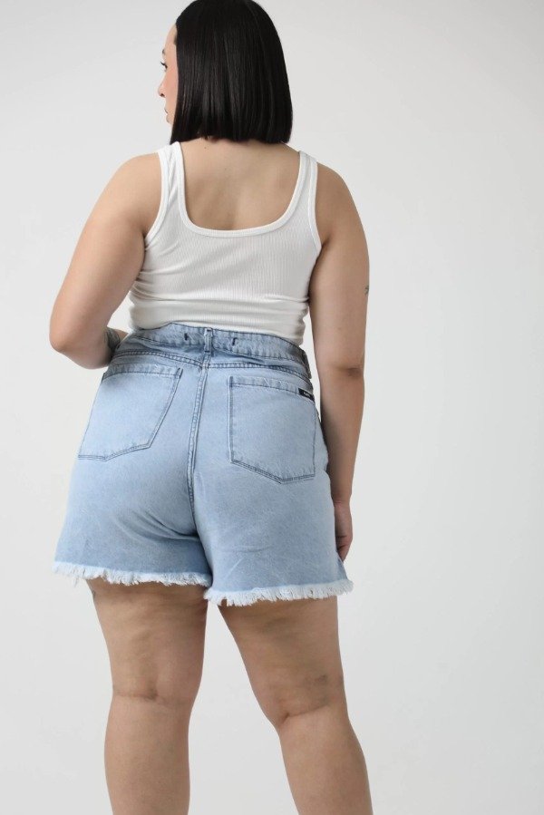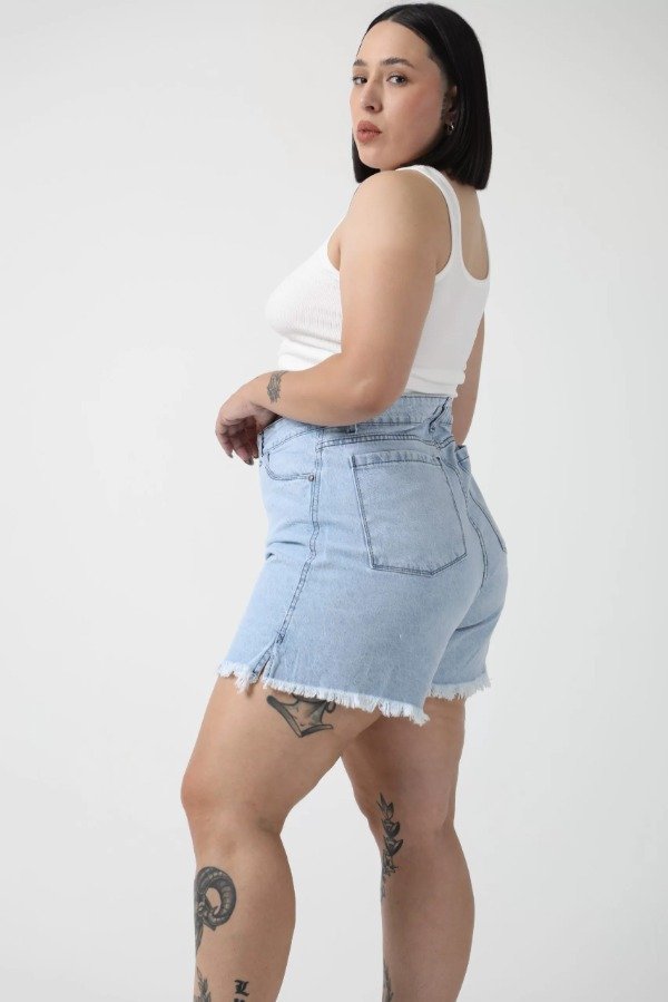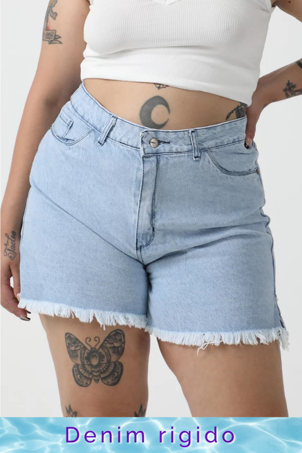 Rigido, tiro alto, bolsillos delanteros y traseros, desflecado.