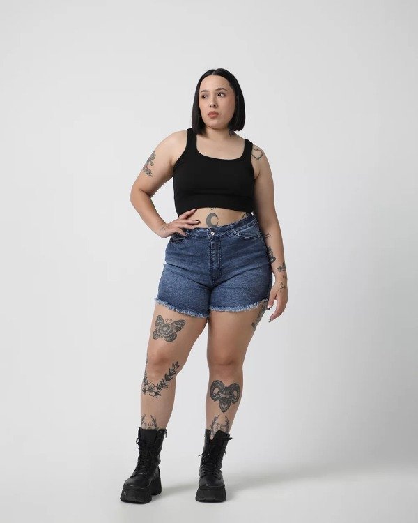 Elastizado, tiro alto, bolsillos delanteros y traseros, desflecado, detalle de bigotes laser.