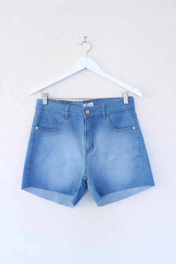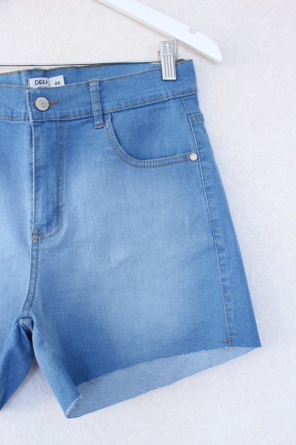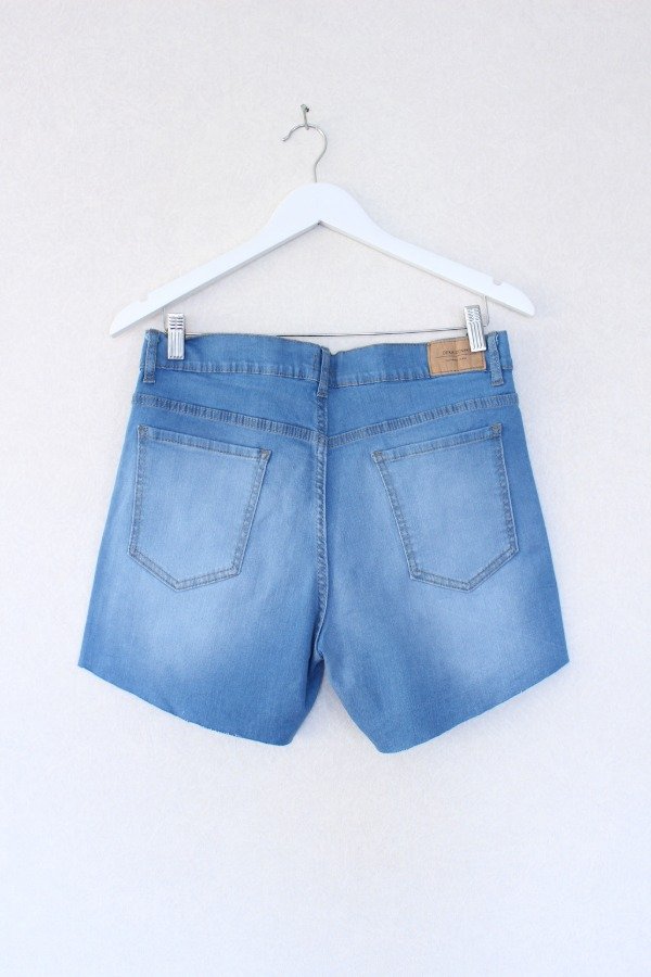 Denim celeste, elastizado, tiro alto, bolsillos delanteros y traseros