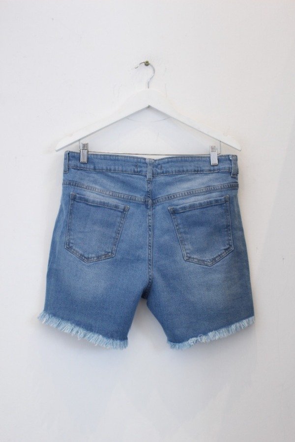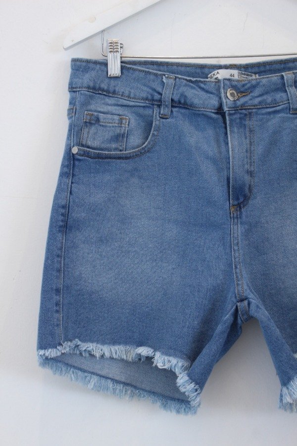 Denim azul, semielastizado, tiro alto, bolsillos delanteros y traseros