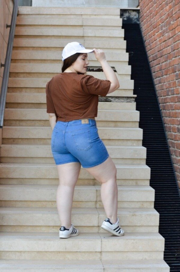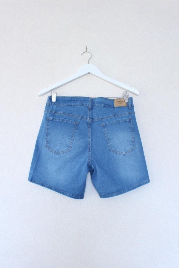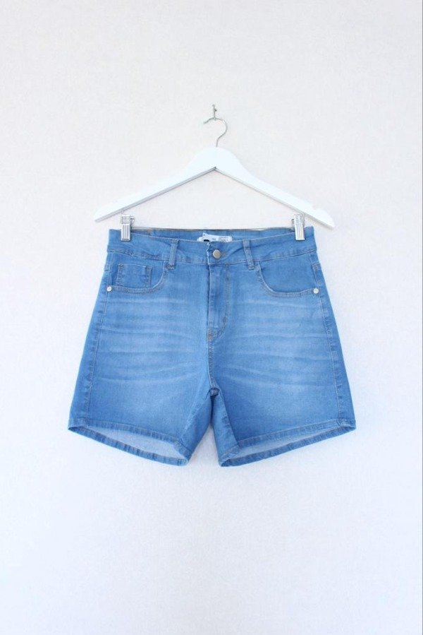 Denim celeste, elastizado, tiro alto, bolsillos delanteros y traseros