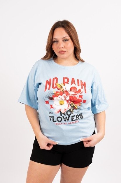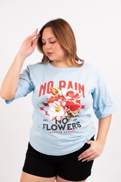 Corte clásico, semielastizada, cuello redondo. Detalle de strass en las palabras.