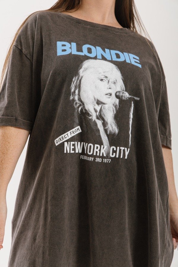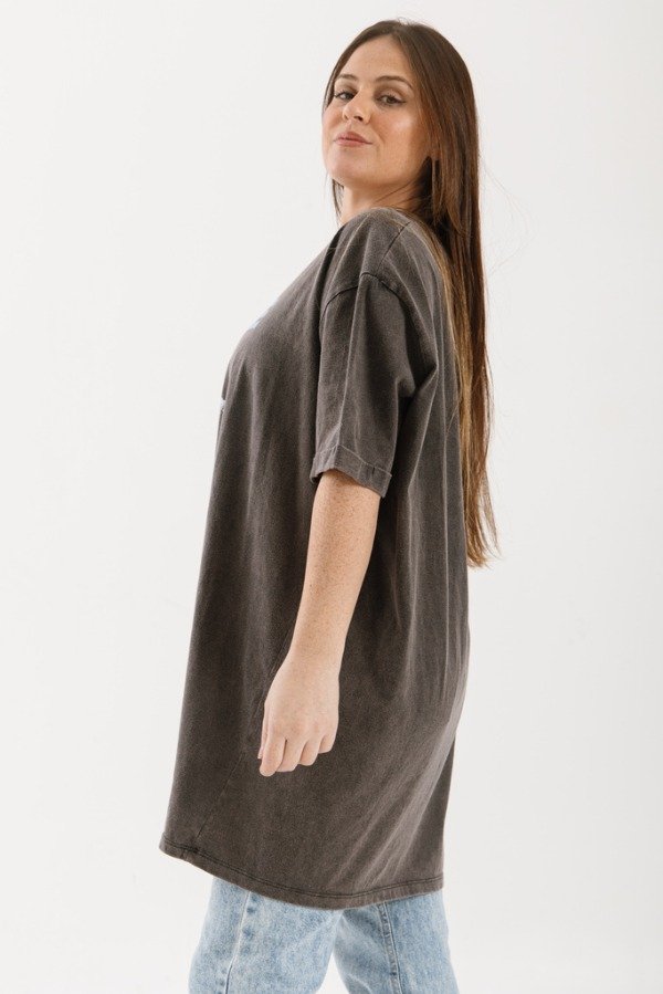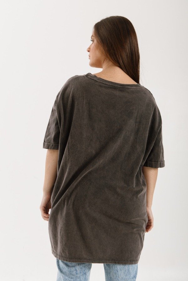 Semielastizada, cuello redondo, mangas amplias, terminación recta.