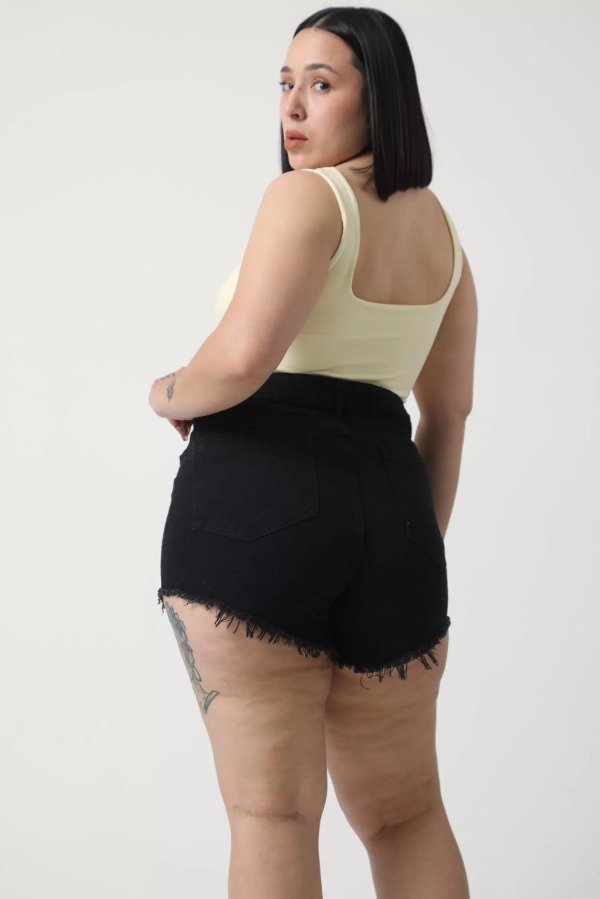 Rigido, tiro alto, bolsillos delanteros y traseros, desflecado.