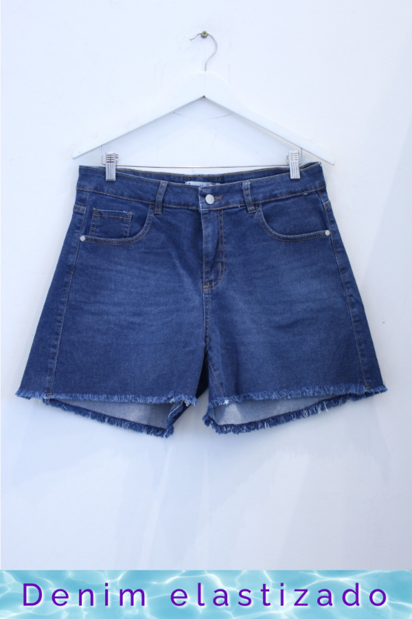 Elastizado, tiro alto, bolsillos delanteros y traseros, desflecado.