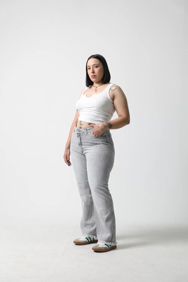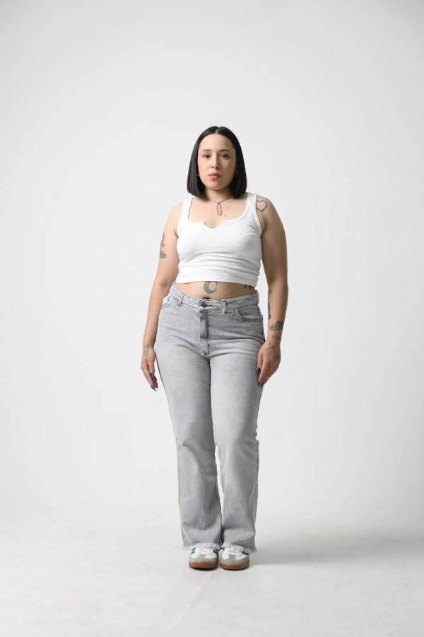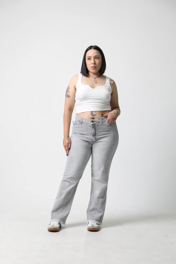 Recto de denim gris claro.