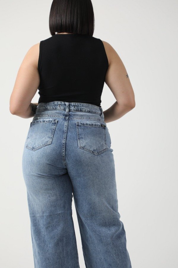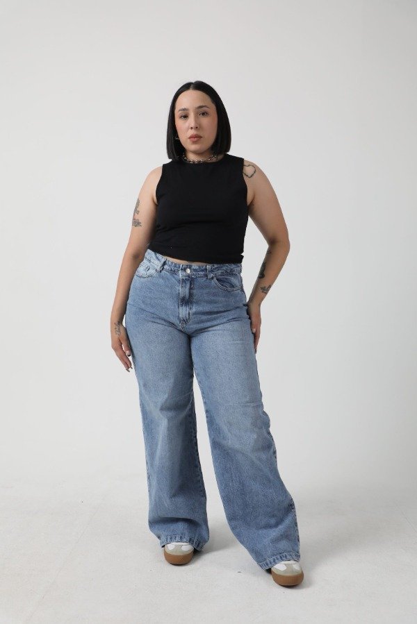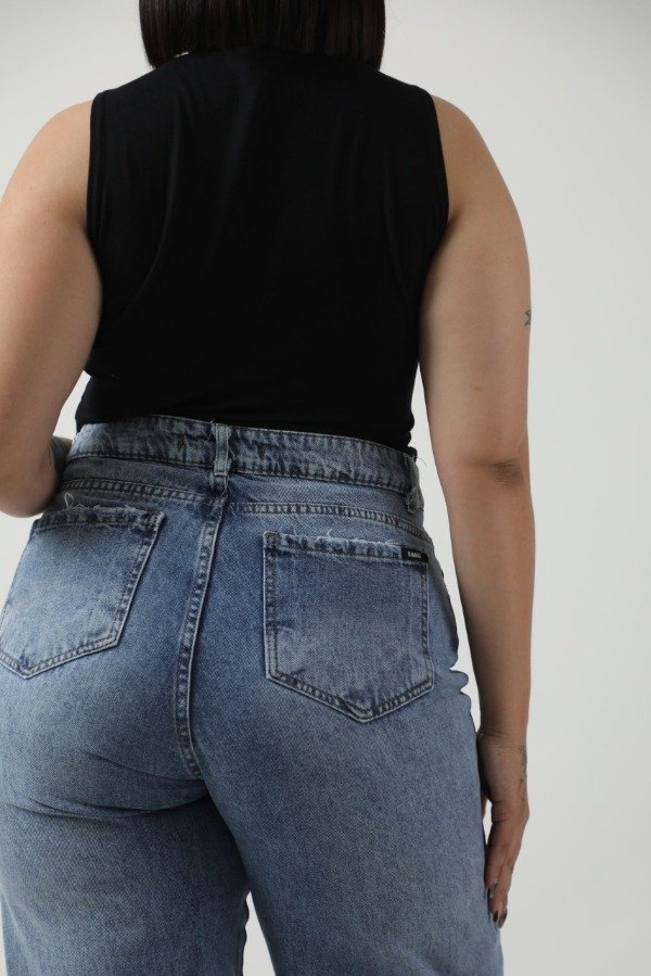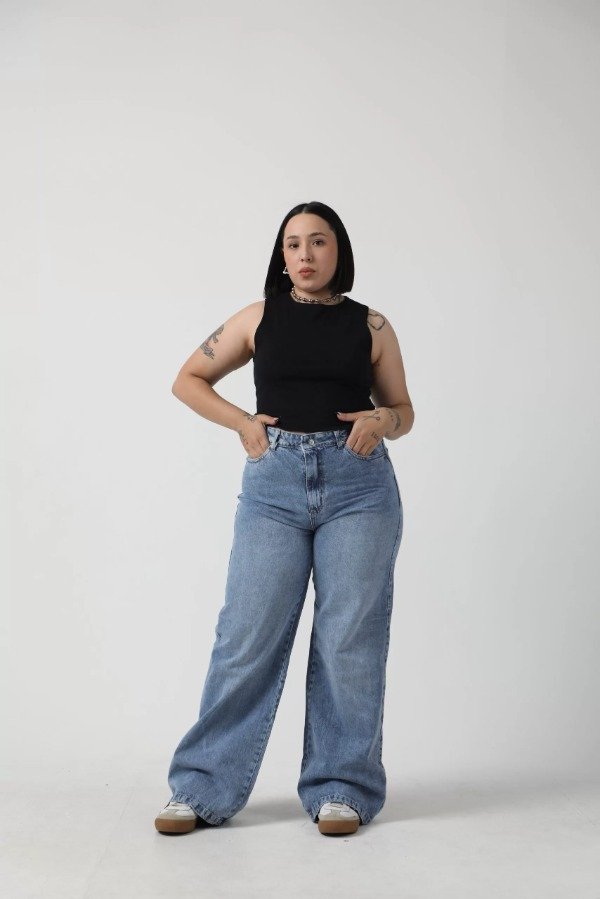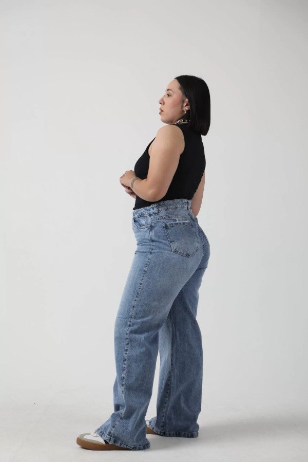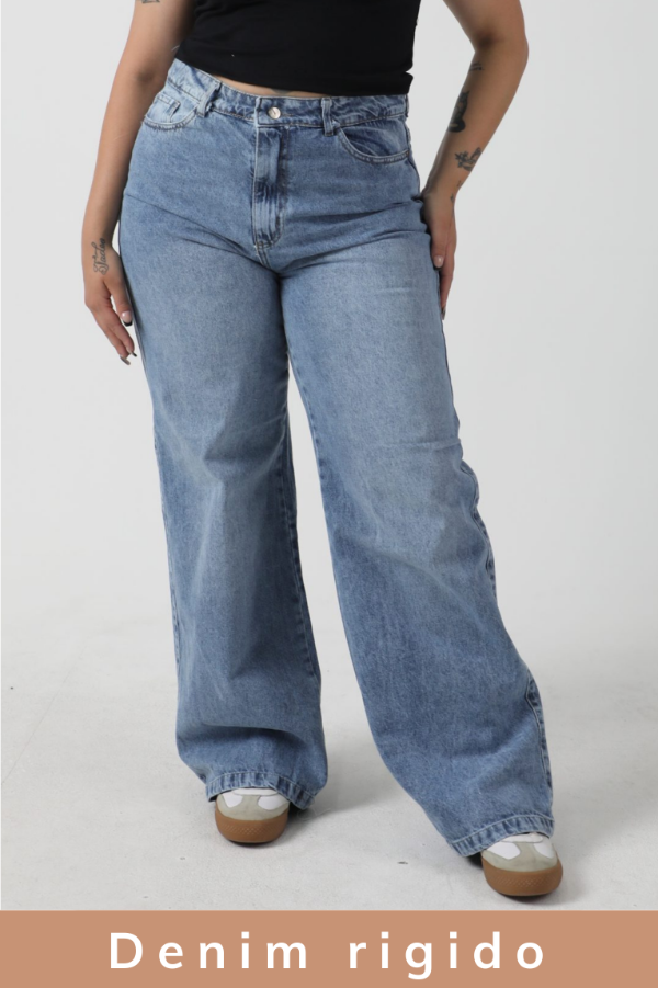 Rigido, tiro alto, bolsillos delanteros y traseros. Corte clásico.