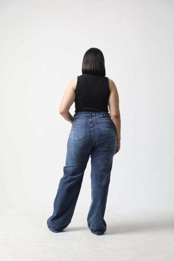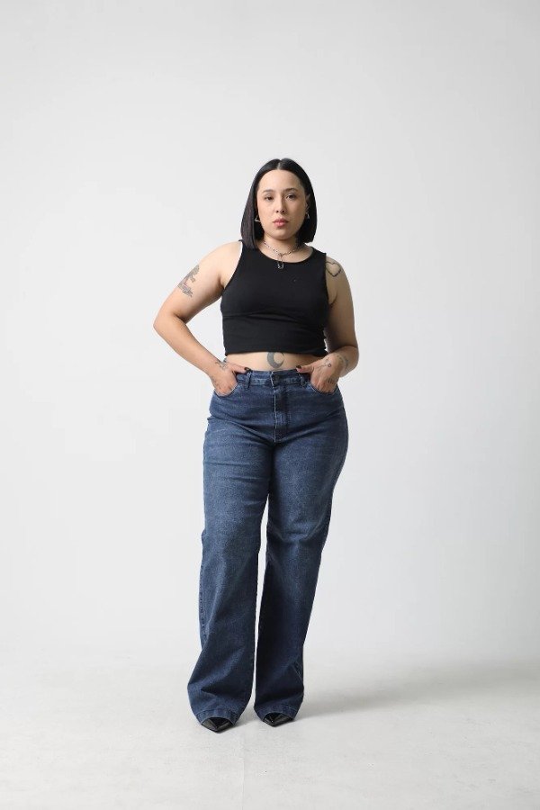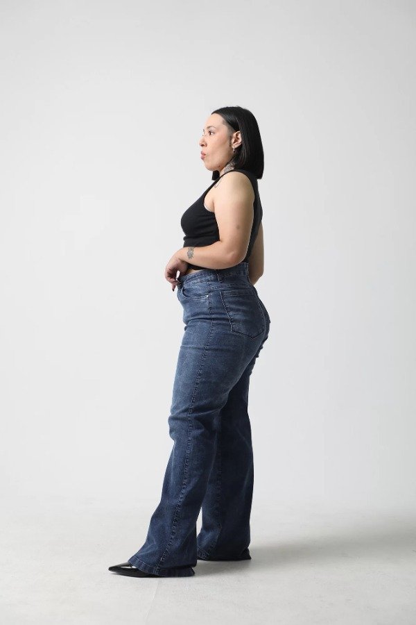 Elastizado, tiro alto, bolsillos delanteros y traseros. Corte clásico.