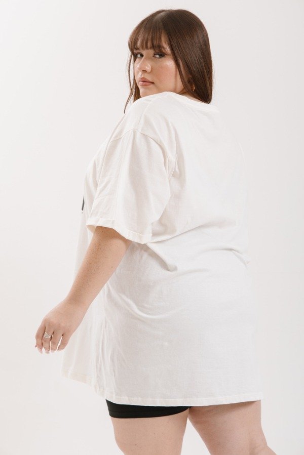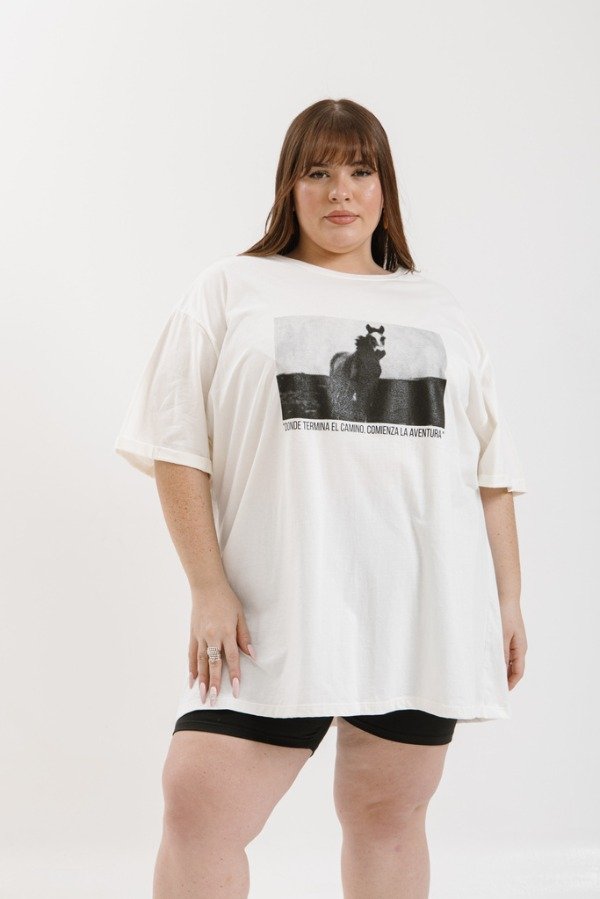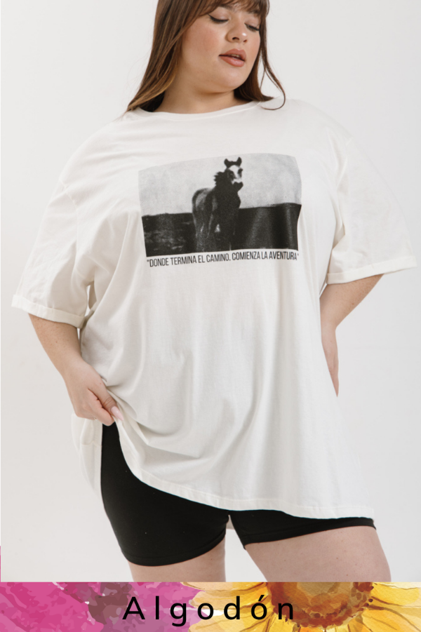 Semielastizada, cuello redondo, mangas cortas, modelo largo.