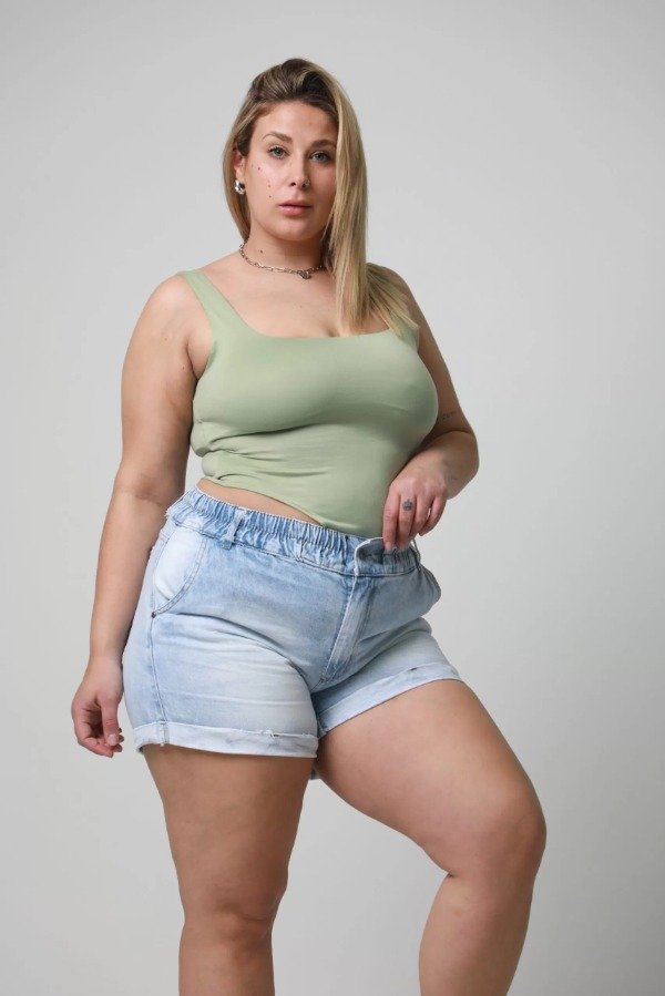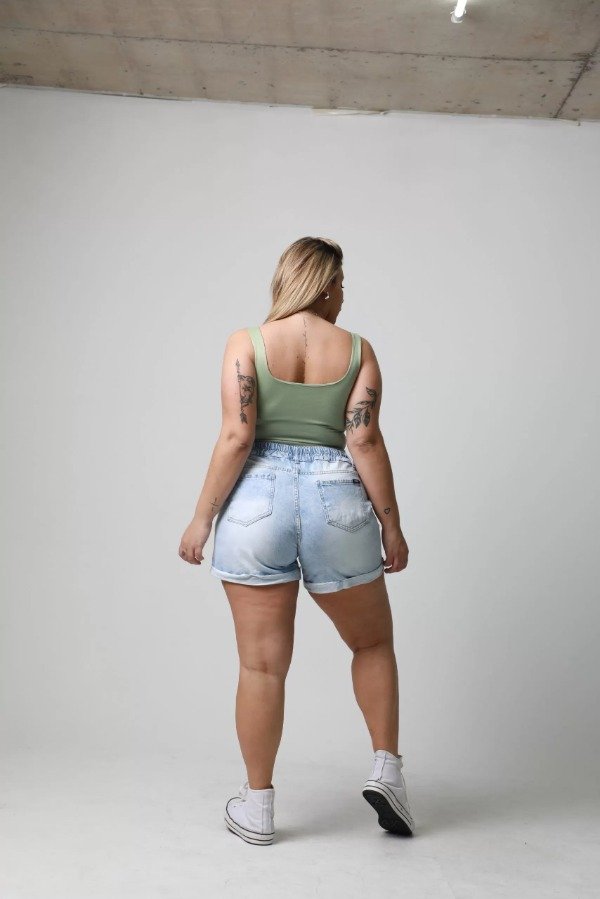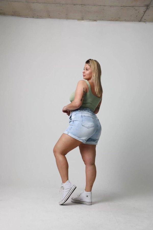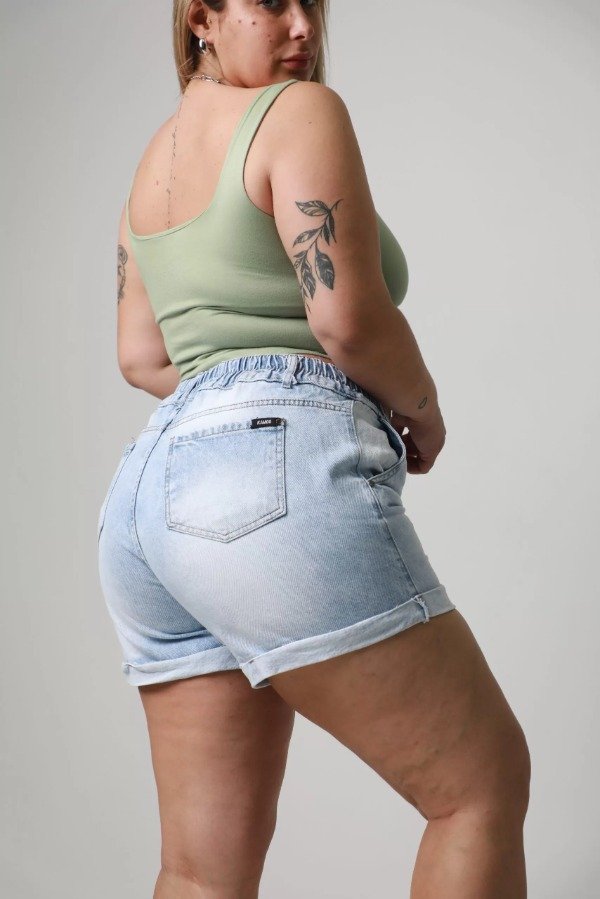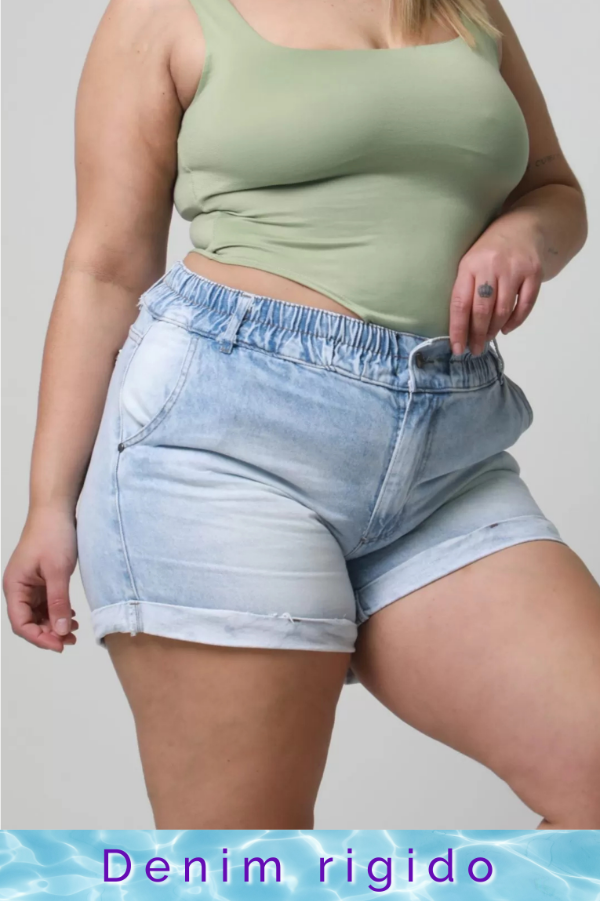 Rigido, tiro alto, bolsillos delanteros y traseros. Elastico en la cintura para mejor agarre. Ruedo a la vista.